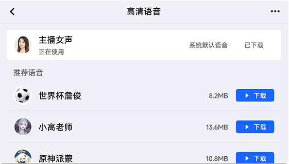 4、在这里可以下载各种语音资源,下载自己喜欢的语音点击使用即可。