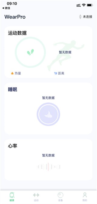 1、首先打开这款软件,我们会默认进入健康界面,点击下方的设备按钮即可跳转到设备界面;