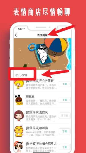 2、在主界面进入“表情商店”,可以浏览和下载丰富的热门表情,提升情侣之间聊天趣味性。