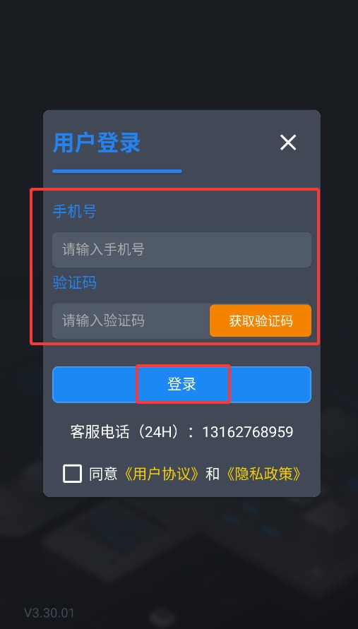 2、在登录页面输入手机号及验证码后,即可成功登录系统。
